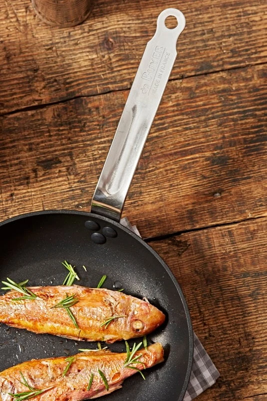 De Buyer’s Choc Intense 20 cm frying pan is ideal for cooking omelettes, vegetables or white fish. Perfected with a beautifully curved steel handle, the aluminium pan has a stylish, traditional look.