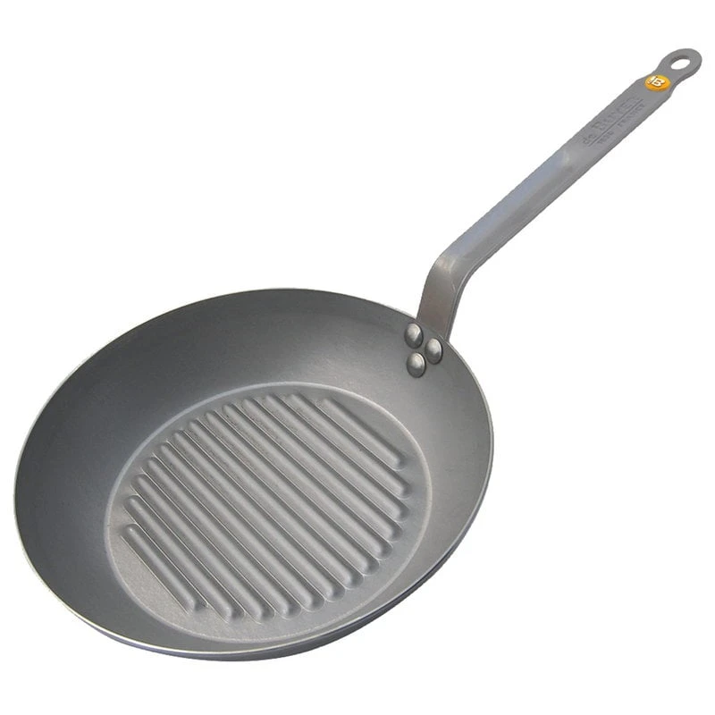 The robust and lightweight carbon steel pans can withstand high temperatures, are excellent for caramelizing food, and stay hot for long. When used regularly, the pan will turn darker and develop a natural non-stick surface – the blacker it gets, the less it sticks. You can also season the pan every now and then. Mineral B pans have been manufactured in France.