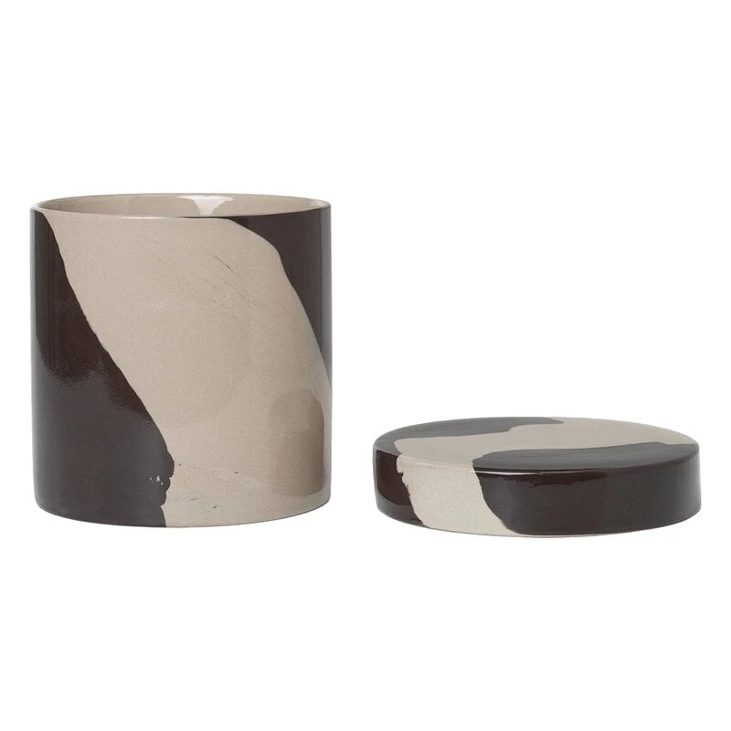 ferm LIVING’s Inlay storage jar is made using two different shades of clay, which form a beautifully unique, marble-like pattern on the surface of the container – the pattern is different on each individual jar. The container is finished with a clear, glossy glaze, and it is dishwasher-proof.