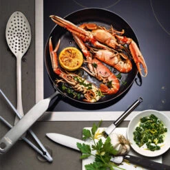 Norr tomato/steak knife, designed by Jacob Leth-Espensen for Fiskars, combines high quality materials with pleasant, ergonomic design, inspired by traditional Nordic kitchen and culture. The wooden handles are crafted of environmentally friendly FSC certified maple: the innovative Kebony technology gives it a rich brown colour and makes it tougher than teak. The Norr blades are made of German steel with a hardness of HRC 54.