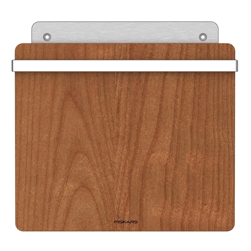 Premium knife block by Fiskars keeps the kitchen knives always easily reachable in an elegant manner. The knife holder is made of heat-treated birch and magnetic metal that holds the knives safely. The knife block can be mounted on the wall or placed on the table on its metal base.