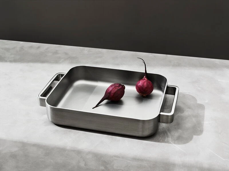 The Tools oven pan from Iittala represents impeccable design both in terms of aesthetics and usability. The uncoated steel pan has a special multilayer structure that ensures an even and quick distribution of heat, and it can also be used on the stove. The stylish union of a minimalist design language and brushed steel surface make the pan perfect for serving, as well, so you can carry your culinary creations directly from the oven to the table.