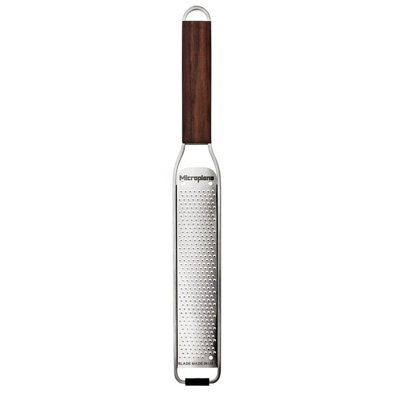 Microplane’s Master Series Zester can be used for zesting hard cheese, ginger, chocolate, nutmeg and truffle into a fine zest. The beautifully crafted handles of the Master Series are made of American walnut, and the non-slip rubber ends give the graters extra stability. In 2017, the Master Series graters won the Red Dot Award.