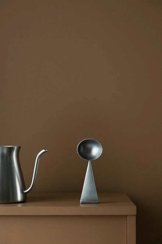 Nedre Foss’ Gram measuring spoon is a stainless steel spoon designed especially for measuring coffee. The Norwegian duo Anderssen & Voll created almost 30 different models of the characterful measuring spoon before they came up with the perfect shape. The Gram coffee spoon combines two basic geometric shapes: a round spoon and a triangular handle with a base that allows you to place the spoon standing or hang it from a coffee jar.