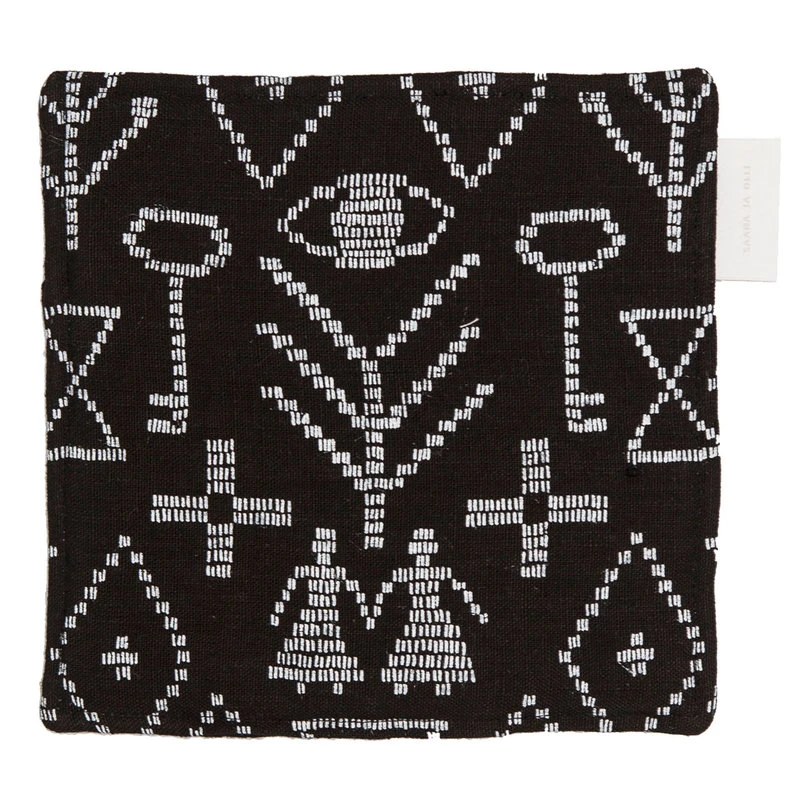 The Maailman synty pot holder/trivet by Saana ja Olli features a print inspired by old Finnish wall rug traditions. An illustration of ancient creation myths, Maailman synty (”The Birth of the World”) features a graphic pattern formed by symbols and figures. All Saana ja Olli products are made from durable 100% hemp fabric and they are suitable for everyday life. The products are transparently manufactured in Finland.